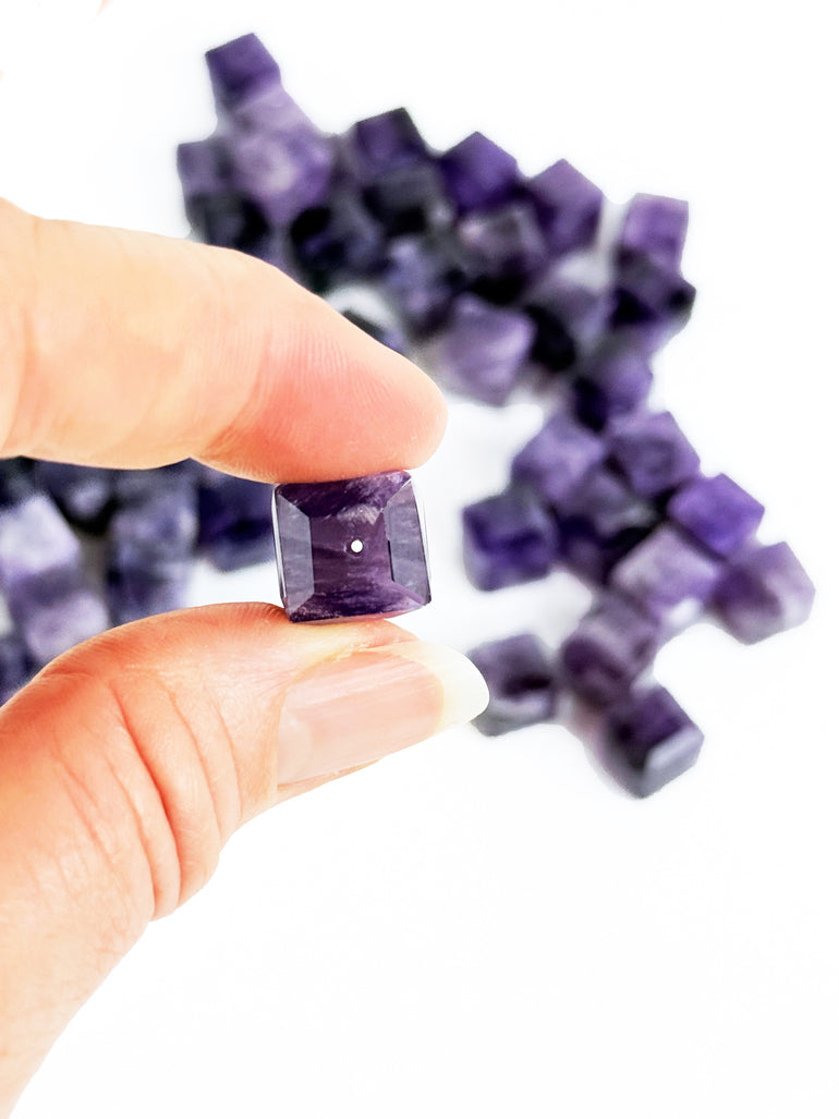 Amethyst 12mm Faceted Cube with Drill Hole - Job Lot 180 pieces