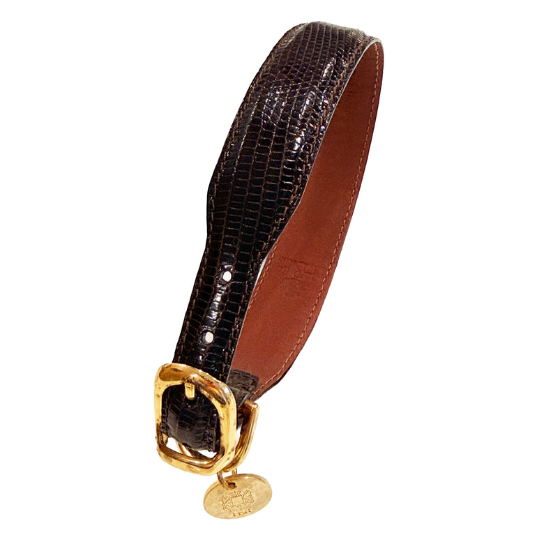 Genuine Lizard Leather Vintage Dog Collar in Rich Brown