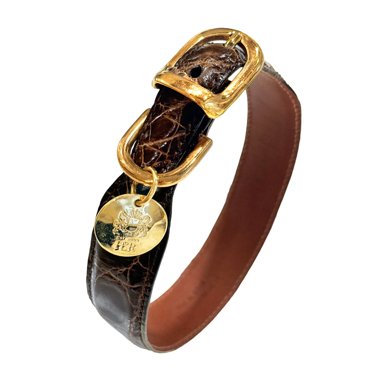 Genuine Crocodile Leather Vintage Dog Collar in Chocolate Brown
