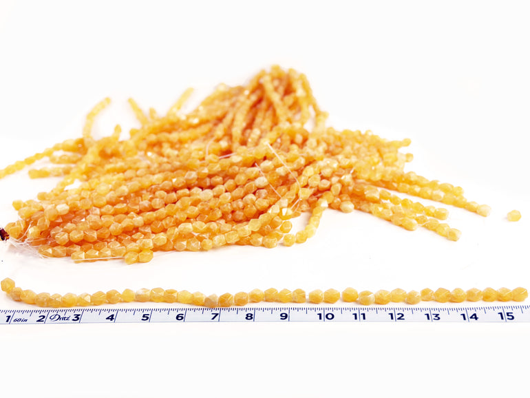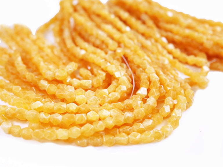 These Honey Jade 8x10mm Faceted Nuggets are on a 16" strand. Honey jade, often referred to as honey jadeite or yellow jade, is a variety of jade that features warm, golden to yellowish hues. It is a cherished gemstone in various cultures, particularly in East Asia, where jade is highly valued both for its beauty and spiritual significance.