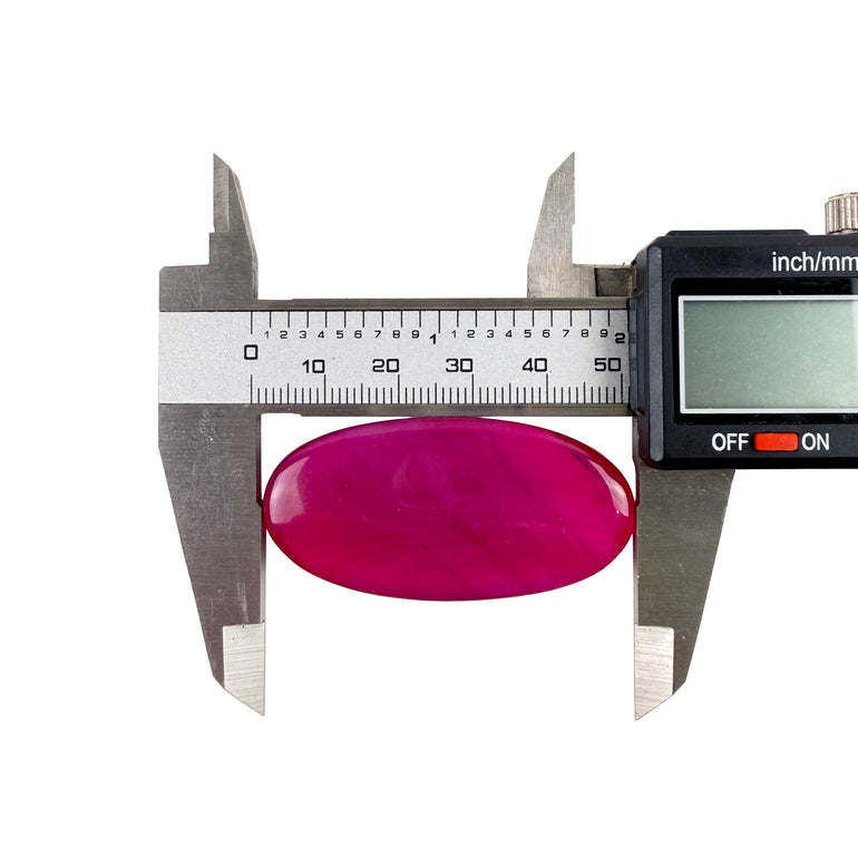 This 25x50mm Pink Dyed Agate smooth oval is a stunning variation of the natural agate stone that has been treated to achieve a vibrant pink hue. Smooth on both sides. Agate itself is a banded, multicolored form of chalcedony, a type of quartz, and it can be found in a wide range of colors and patterns. When dyed, the stone retains its distinctive banding but takes on a rich, often translucent pink shade.